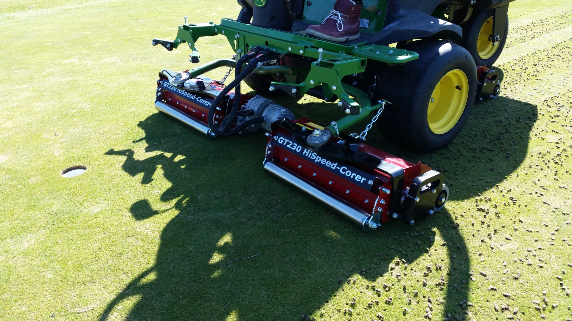 The MAREDO GT230 HiSpeed-Corer is a state-of-the-art turf management machine engineered to perform high-speed core aeration. This advanced coring head is designed to quickly and efficiently pull cores from the turf, allowing for enhanced air, water, and nutrient penetration into the soil. Ideal for use on golf greens, the GT230 HiSpeed-Corer is an essential instrument for maintaining healthy and vibrant turf. With the GT230 is is now possible to remove and control organic material percentages in the top layer of the greens without using disruptive methods.