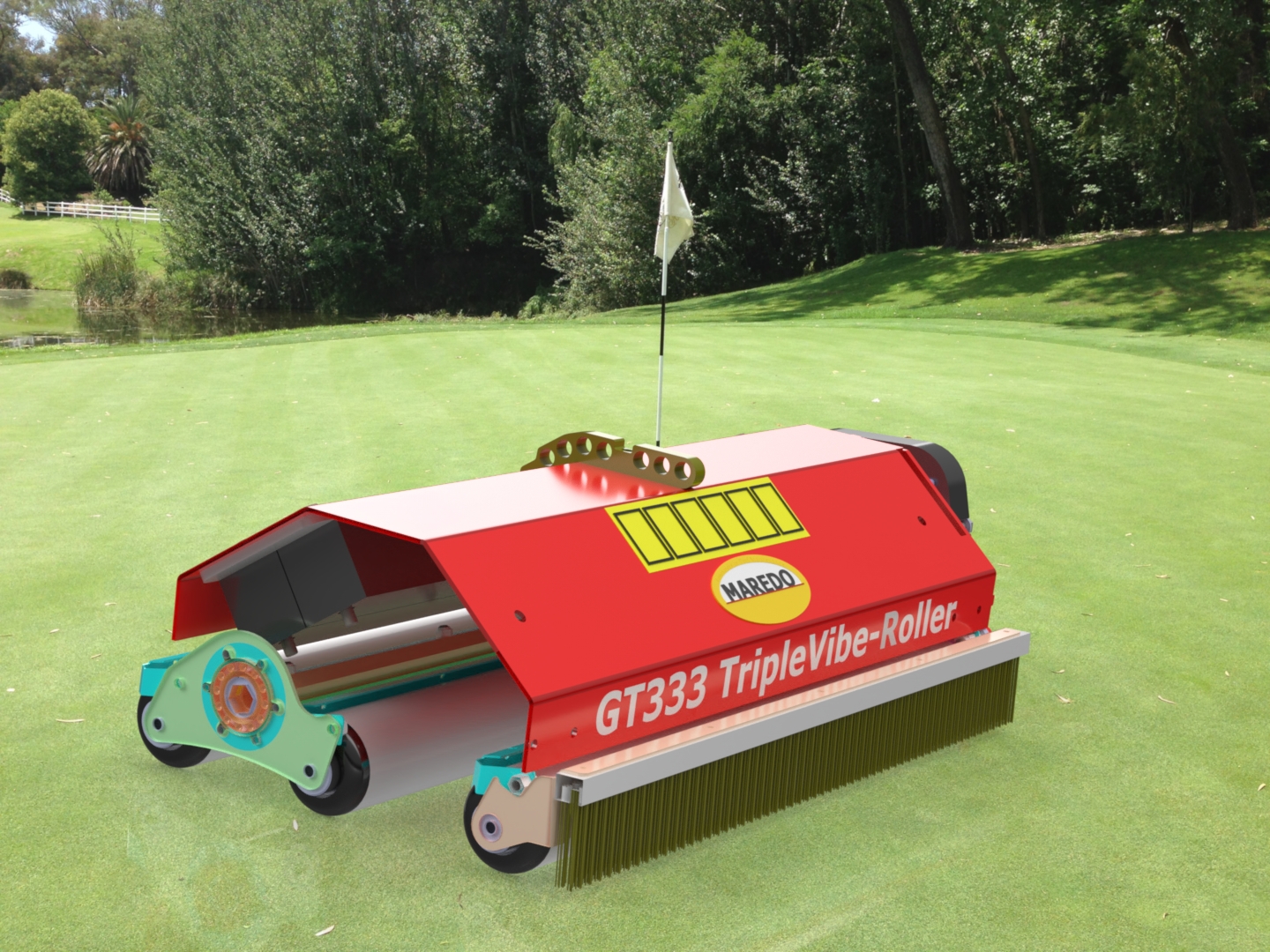 The MAREDO GT333 TripleVibe-Roller is a cutting-edge turf management machine designed for precise surface smoothing and rolling. It effectively eliminates bumps and irregularities, enhancing playability and surface uniformity. Regular use of the GT333 TripleVibe-Roller can also reduce turf disease pressure, promoting stronger, healthier, and more resilient grass. Perfect for golf greens, it's an indispensable tool for maintaining top-quality playing surfaces.